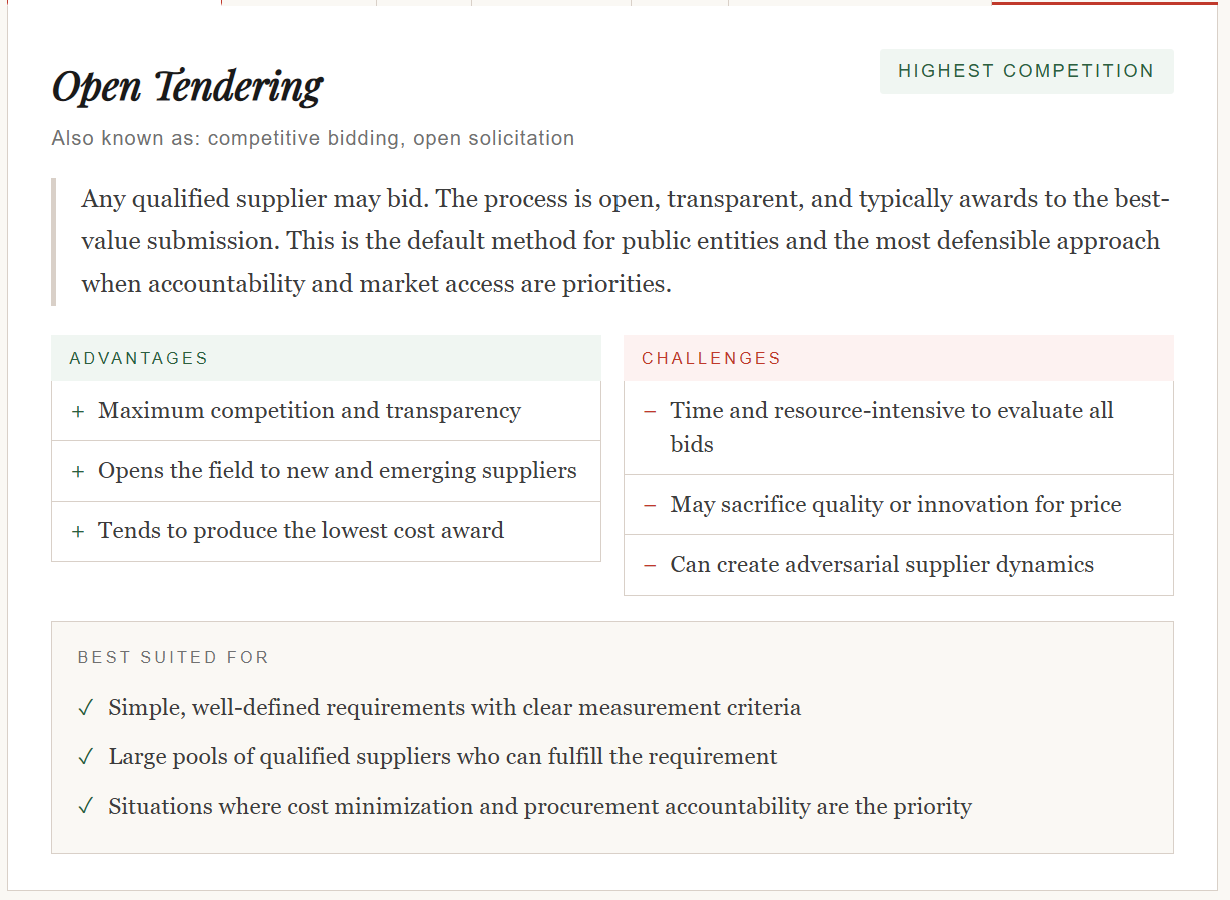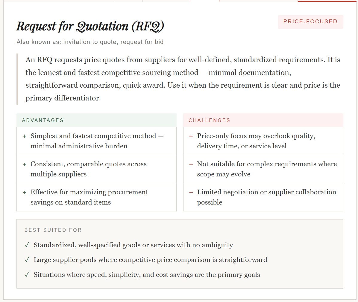 “The right sourcing method is not the one with the most competition or the least paperwork. It is the one that best fits the complexity, timeline, and risk profile of the requirement.”