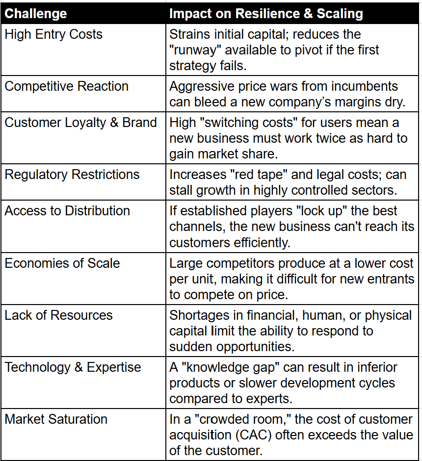 Navigating the Barriers to Resilience: Before a company can scale, it must survive these “New Business Strength” factors. These aren’t just hurdles; they are the stress tests that define your market position.