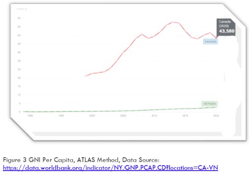 Figure 3 GNI Per Capita, ATLAS Method, Data Source: (https://data.worldbank.org/indicator/NY.GNP.PCAP.CD?locations=CA-VN)