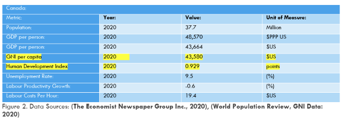 Figure 2. Data Sources: (The Economist Newspaper Group Inc., 2020), (World Population Review, GNI Data: 2020)