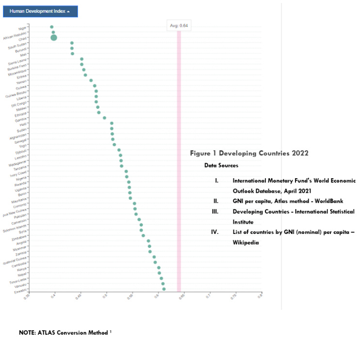 The highest possible HDI score is a 1.0. A country that scores less than .80 is considered developing. (World Population Review, GNI Data: 2020)