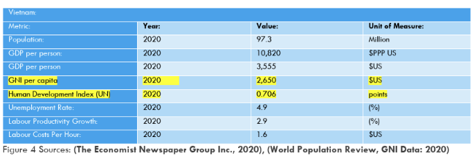 This evaluation will study the differentiation in strategic methods used by businesses seeking to launch an expansion into Vietnamese and Canadian markets. The key differences between each being that one is considered an industrialized nation and the other in the position of developing. The application of statistical evidence to observe each national standing according to ratings systems applied by The World Bank (GNI) and the United Nations (HDI).
